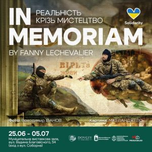 24 червня у виставковій залі Миколаївського міського палацу культури і мистецтв відбулося відкриття виставки французької художниці Фанні Лешевальє «In memoriam. Реальність крізь мистецтво», організованої за підтримки благодійного фонду «Solidarity». Регіональні партнери: Миколаївська міська рада та Миколаївська обласна державна адміністрація. Ця виставка – про війну, пам’ять і солідарність. Про біль, який переживає Україна, і...