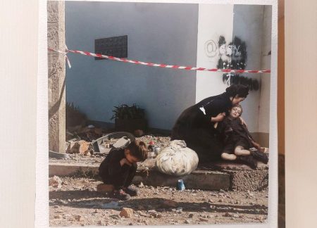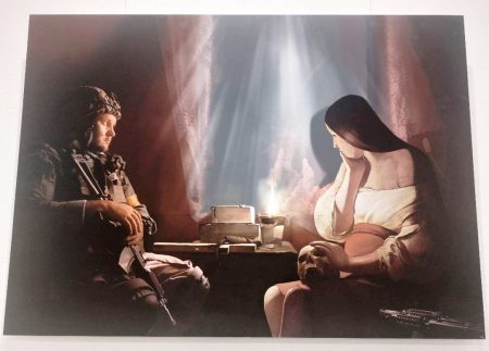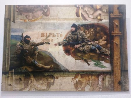 Працюючи в техніці фотомонтажу, мисткиня поєднує світлини воєнних кореспондентів із репродукціями класичного європейського живопису, створюючи разючі образи, що змушують зупинитися, вдивитися та відчути.