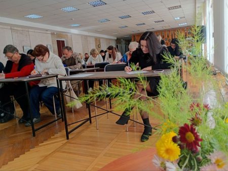 Цього дня в центрі Миколаєва, у затишній бібліотечній залі, свої знання з української перевірили близько 50 представників різних вікових категорій, соціальних верств і професій. Долучився до написання й начальник управління з питань культури та охорони культурної спадщини Миколаївської міської ради Юрій Любаров та директорка Міського методичного центру клубної роботи Наталія Федець.