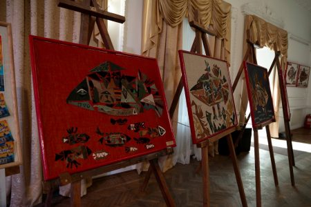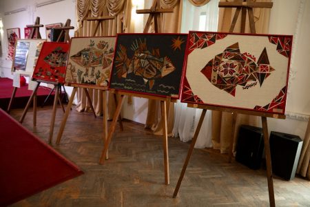 Юні митці запросили поціновувачів декоративного мистецтва у світ глибокої символіки, сповненої дивних образів. На виставці представлена колекція композицій, виконаних у техніці аплікації зі шкіри, замші, тасьмі на льоні і мішковині. Це 18 учнівських і одна колективна робота. Кожна з них, яскрава й самобутня, примушує зупинитися й приділити увагу елементам, що розкривають її зміст.
