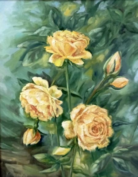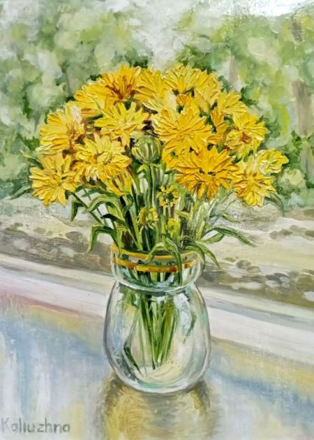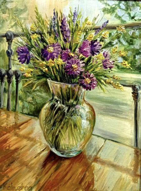 Творчість – це рятівна завіса під час війни. Так вважає Світлана Бойкова-Калюжна, яка ні на мить не зупиняла творчий процес. Її захоплення – олійний живопис, авторська лялька-мотанка, декоративний живопис за мотивами таврійського розпису. У 2022-му художницю було обрано до артрезиденції «Аура міста» м. Свалява Закарпатської області для створення картин, що були представлені на благодійному аукціоні на користь ЗСУ. Також пані Світлана взяла участь у виставці-аукціоні артплакату в стилістиці національного українського розпису, організованій онлайн-музеєм «UA. Heritage». Представлені її роботи вирушили у подорож Україною: Бахмут, Балаклія, Ізюм. Для благодійних аукціонів в Італії та Франції нею було створено серії традиційних ляльок-мотанок «Квіти України».